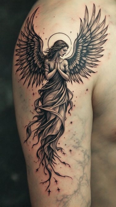 Scroll down to view various styles of Angel Tattoos from artists around the world.